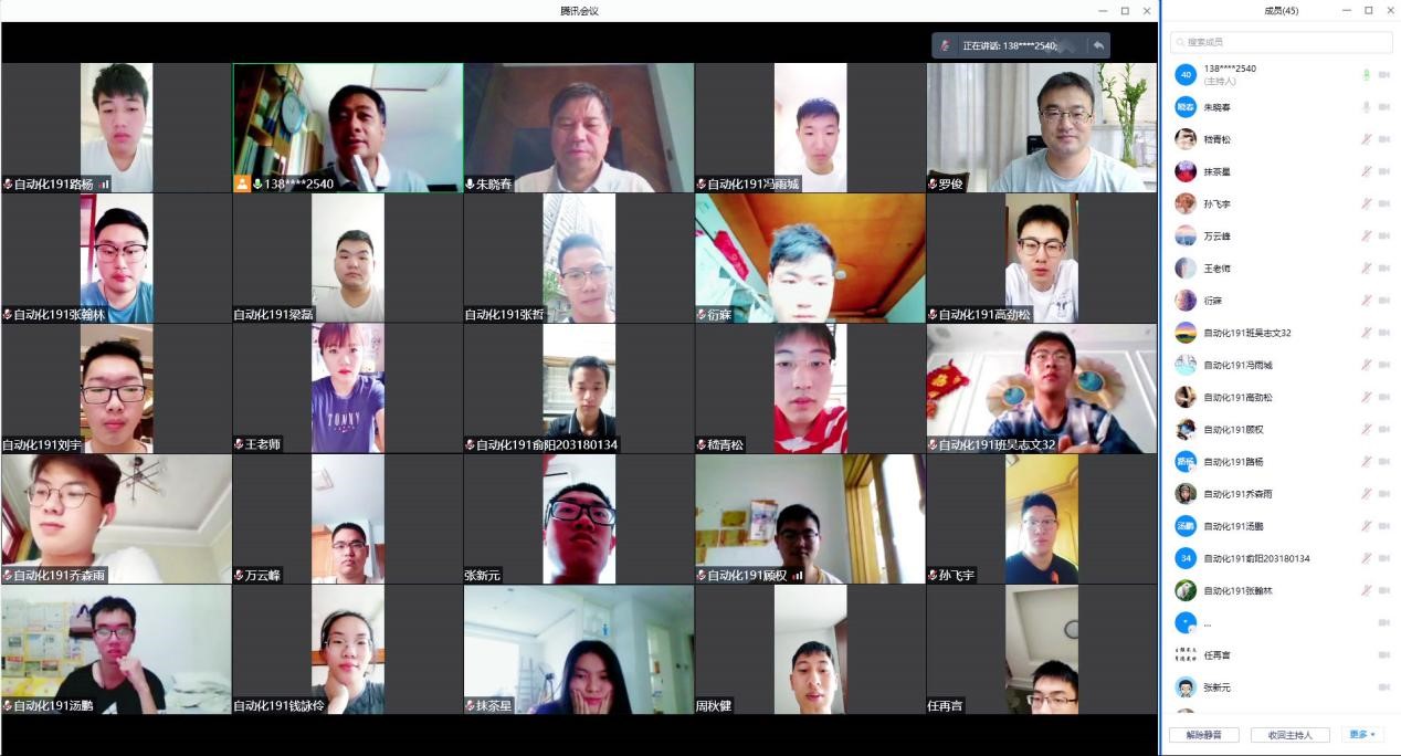 特殊时期,变的是学习形式,不变的是老师们的温暖与守候。主题班会上,朱晓春副院长还就同学们提出的关于学业发展、学习方法、工程实践等问题展开“云解答”和“云支招”,他希望同学们在疫情下思考、在平安中成长,坚持向学、共克时艰,自强不息,勇于行动,用不懈的奋斗成就美好的未来。
